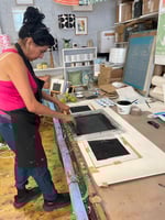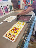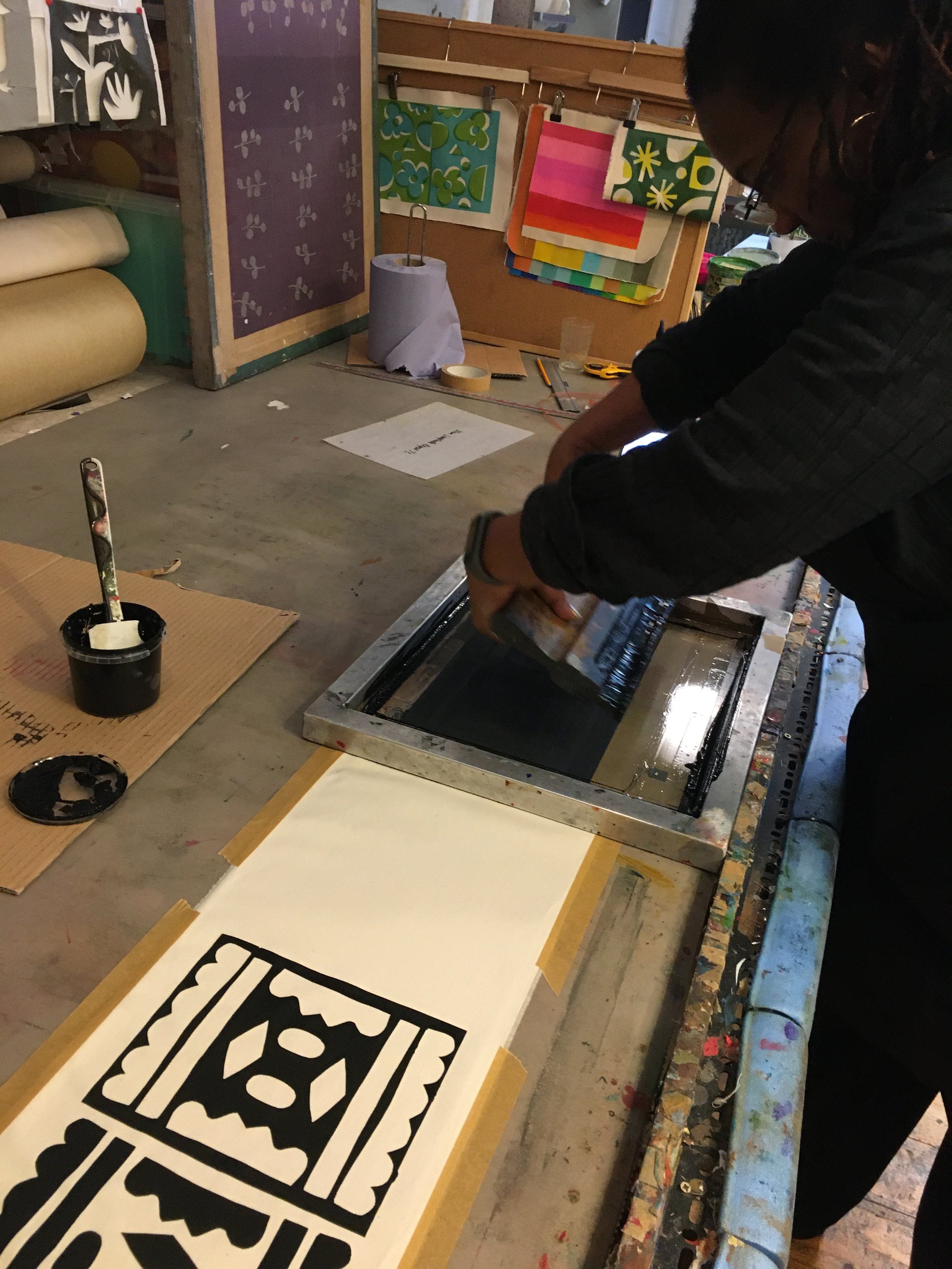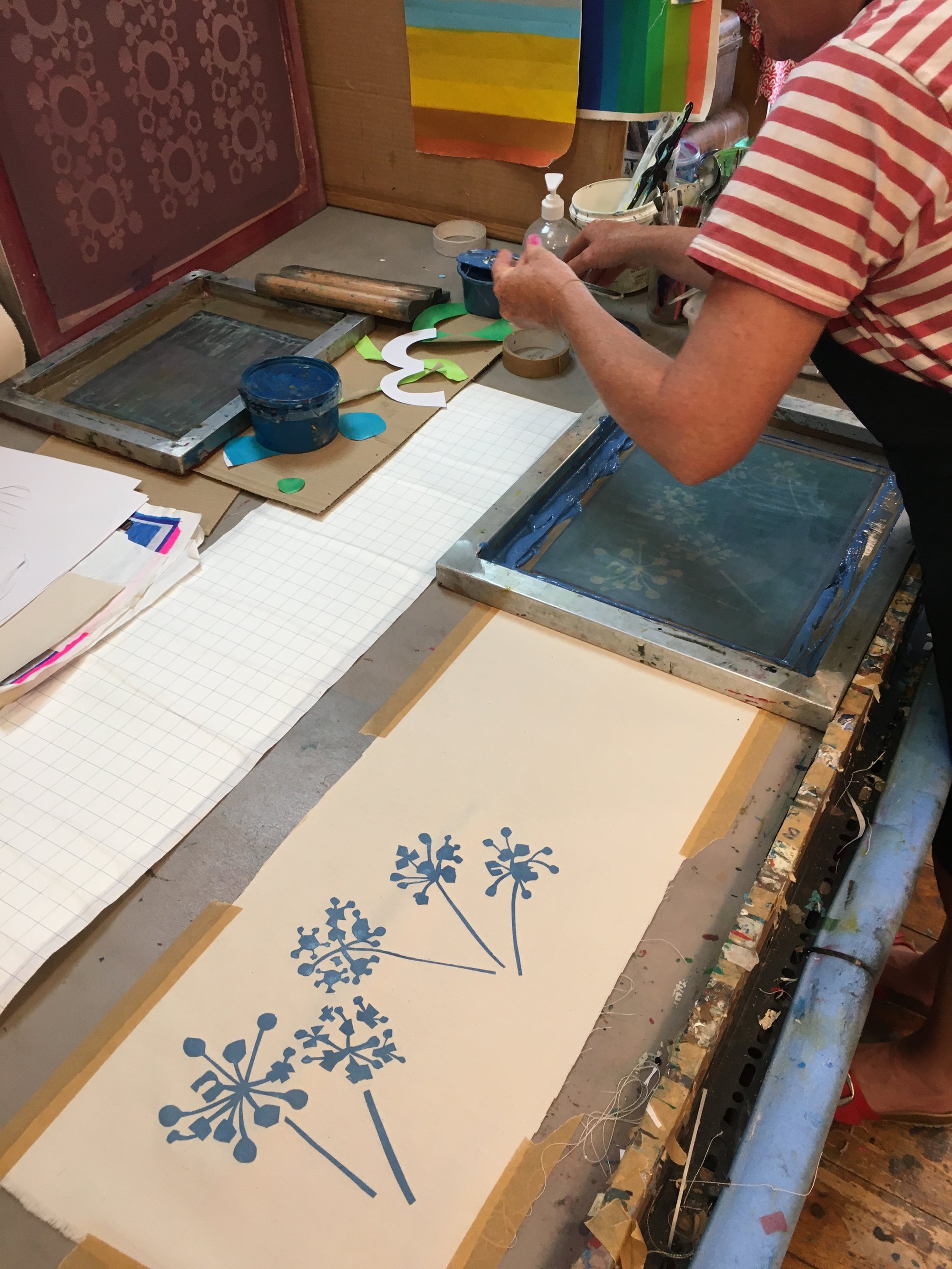 During the one-day follow-up workshop (10am–4pm, weekday or weekend), you’ll use the skills you’ve learned to print with paper stencils and develop a simple one or two-colour design. You’ll also have access to my collection of patterns and textured screens, plus plenty of examples in the studio to inspire you. There will be lots of practical support and plenty of space to experiment and play. Tea and biscuits are provided, but please bring a packed lunch.